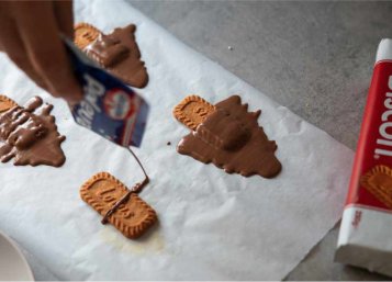 - Vytvoř stromečky: Přelévej čokoládu přes sušenku do trojúhelníku. Dokonalost není potřeba — naopak, trochu „boží chaos“ vypadá skvěle 😄.