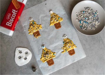 - Připrav podložku: Rozlož pečicí papír a na něj sušenky. Tady začne vznikat kouzlo 🎄.