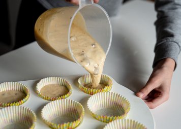 6. Těsto rozdělte do připravených papírových košíčků – ideálně je plňte asi do ¾ výšky.